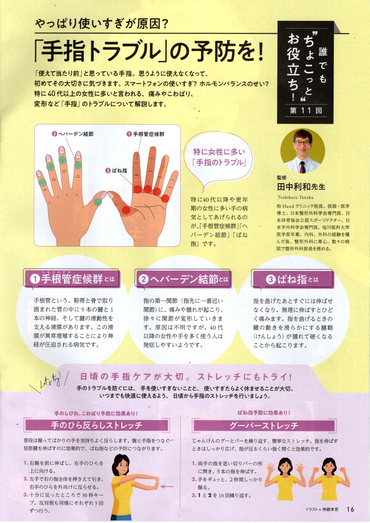 日経ヘルスにて、院長監修の「手のお話」の連載が始まりました